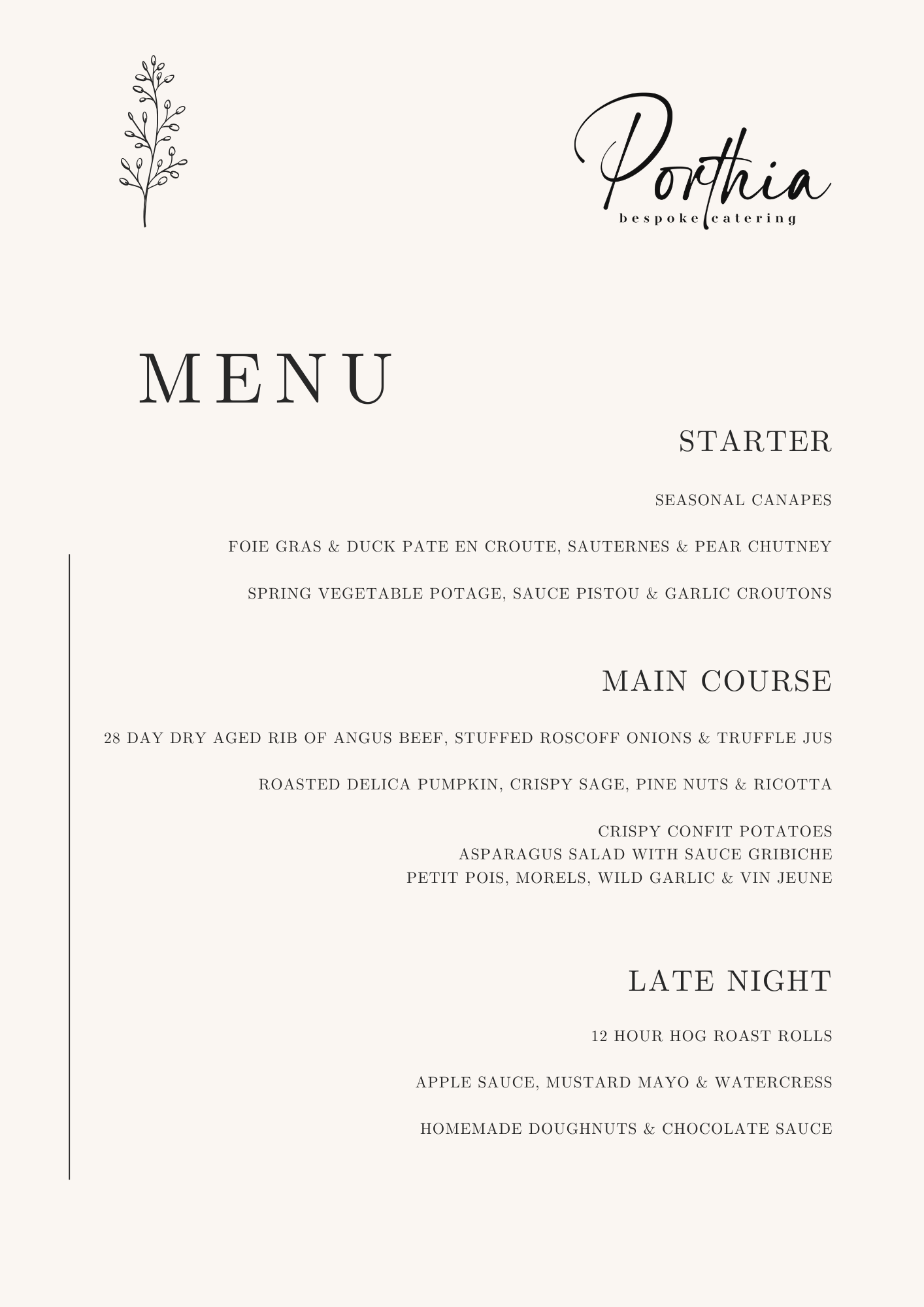 Spring Wedding Menu